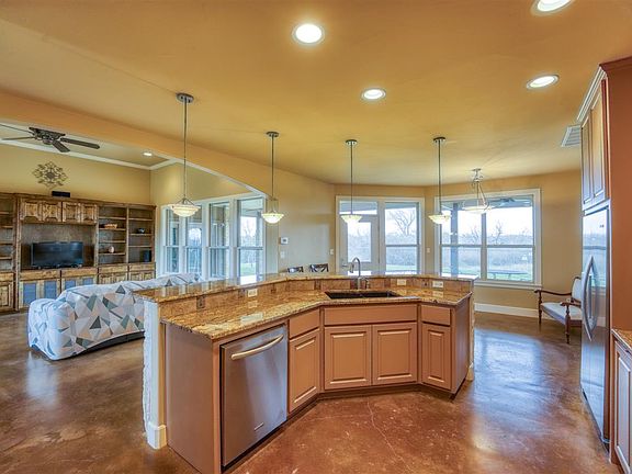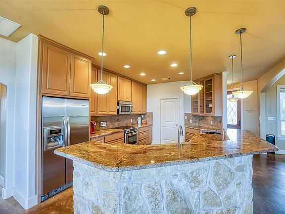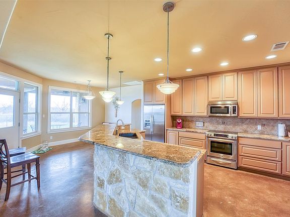 Situated on over 10 acres in the Texas Hill Country, backing up to the seasonal Johnson Creek & across the street from the Llano River. You will definitely fall in love with this beautiful custom home in Rio Llano. The home features a large open living area highlighted with windows on each side to allow stunning natural light and amazing views of the wild flowers, hills, and nature. The kitchen boasts high-end cabinetry, granite counter tops, stainless steel appliances and a walk-in pantry. Relax in the private master en suite with a huge walk in shower, jacuzzi tub, double sinks and a dream closet with built in drawers, shelves and storage. This wonderful home also has a private office with wall to wall custom built in cabinets. On the opposite side of the living room, there are 2 bedrooms separated by a Jack and Jill bathroom. Walking outside, the covered outdoor living areas are featured in the front and rear of the home where you can sit back, relax, and enjoy the views. The attached guest cottage has a full sized custom kitchen with a walk-in pantry, dining area, & office/craft room with custom built-ins. The large bedroom features a custom closet, full bath and its own front and back entry. Perfect for family, friends or additional income. If you are looking for a custom home on over 10 acres, your search is over, come see it today!