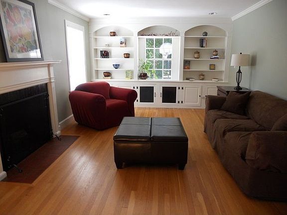 Deceivingly large cape style home with great entertaining space! Large family room overlooks private back yard. Front to back living room with fireplace and built ins offers space for formal entertaining along with dining room with corner cabinet. Substantial master bedroom accommodates king size furniture and has ample closet space. Pretty second bedroom with built in shelving and third bedroom with double closets. Wood floors throughout the home recently refinished and walls painted in appealing colors. Great finished areas in basement for rec room and office space as well as work shop area. Complimentary AHS Home Warranty included with sale.