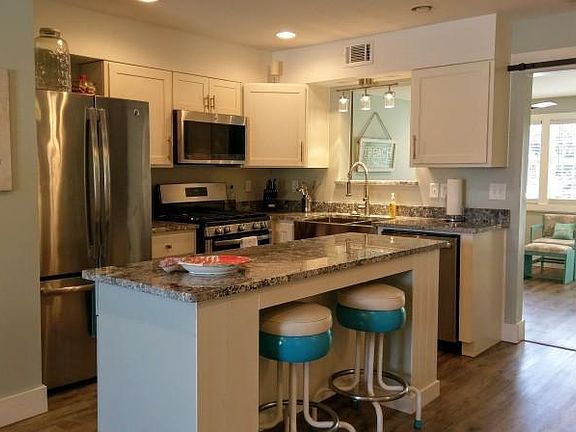 WoW... this is it!!! A Gorgeous Completely Remodeled 3 Bedroom with 3 Baths close to the Beach Walk and backs up to the Lake. If you are L@@King for that ''Coastal Looking Unit'', this unit is for YOU! You can have a Bedroom & Full Bath Downstairs. There was NO Expense Spared on this unit. NEW NEW NEW from top to bottom. It is even an ''End Unit''.The HOA Dues are only $450 a Quarter NOT a Month and that pays for your Basic Cable Package, Termite Bond, Household Trash, some Pest Control, Mowing your Lawn, and Lots of Amenities. There are 11 Pools ''5 Heated'', Shuffleboard Courts, Tennis Courts ''2 Lighted'', an 18 hole Mini Golf Course, Conference Center, Fitness Room PLUS there is a Private Clubhouse with a Snackbar and a Pool directly on the Beach that is Gated! Age, SF, and Dimen. a