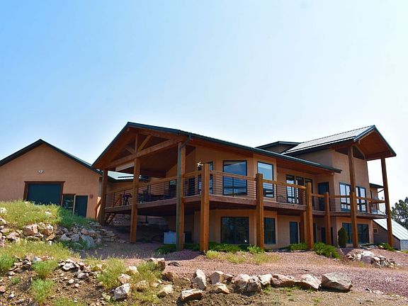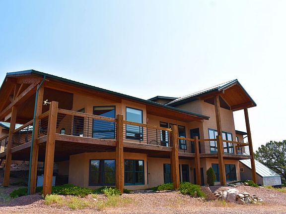 Exceptional in every way, this beautiful, furnished southwest style home is positioned perfectly to capture panoramic Sangre De Cristo mountain views. Built on a hill to take advantage of the breathtaking 360 degree views. This stunning southwestern stucco home welcomes you with covered entry porch, the perfect place to sit and enjoy the mountain breeze. The home has extensive composite decking that wraps around 2 sides and is covered off the kitchen, providing a lovely spot to entertain your guests and take in the views. Inside is a spacious open floor plan with beautiful hardwood flooring throughout. The gourmet kitchen features granite counter tops, a center island, wine storage, built in desk space, and gas professional-style Jenn-Air range with double ovens. Thoughtfully designed, all rooms in the home are situated to maximize the mountain views including the open living room, dining room, and pretty sunroom. The spacious main-floor master suite is easily accessible and a loft provides space for guests. The 2,239 sq ft basement is partially finished and plumbed for a full bathroom. The house includes an oversized 3 car garage. Exquisite luxury mountain living!