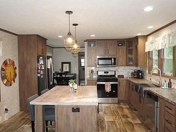 Nearly new single wide in Countryside Manor 55+ community. Lovely lot with large, paved parking and private fenced rear yard including shed. 3 bedrooms 2 full baths. Gorgeous kitchen with stainless steel appliances, white oak cabinets with black hardware, large center island and farmhouse sink. Large primary bedroom and bath with double sinks, shower with seats, & walk in closet. Park fee includes sewer, trash and water. Why buy new when you can buy this fully set up and ready to go!