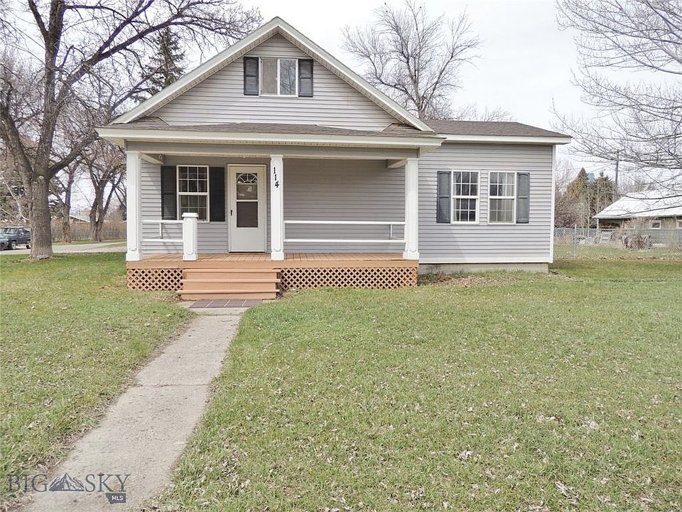 You will feel at home in this charming bungalow. The main floor master has plenty of storage with 2 closets; one a walk-in. The bathroom has dual vanities and a separate shower and bathtub. Spend some time outdoors waving to the neighbors from the covered front porch or BBQing on the private back deck. The yard is nearly 1/3 of an acre with mature trees, underground sprinklers, and is fenced. The 2 car garage has a storage attic and is heated for the Montana winter. This property has no covenants making it a great investment.