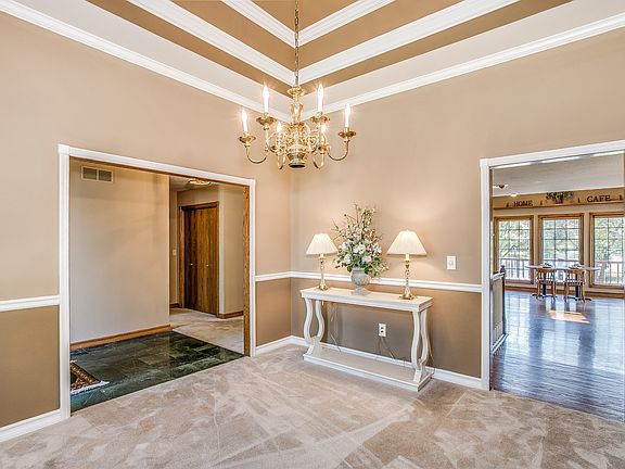 Beautiful brick custom built 4 bed/4 bath ranch home with AMAZING views!! The marble floor entry welcomes you and on your right is the formal dining room with the gorgeous trey ceiling. Enjoy the living room with the stunning coffer ceiling as you overlook the water views. Enter through the wood paneled french doors to your office/nursery and see the same views! Huge open concept kitchen to entertain your family and friends with a double-sided fireplace, or step out onto the large deck or walk down the stairs to the patio below! Relax in your spacious master bedroom with vaulted ceilings! The bath has a jetted tub and steam shower. The vanity has new light fixtures, new counter, and new porcelain tile flooring. Master closet is huge. All bedrooms are over sized and have stunning built-in shelves in every closet. The laundry room is on the main level as well as hook ups in the basement. All rooms in the house have been freshly painted! The flooring in the basement has all new carpet, laminate, and luxury vinyl in the bathrooms. The basement is a true full walk-out with beautiful views from every room! Warm up with another fireplace in the family room in the basement or play in the rec room. Two more bedrooms are connected by a jack & jill bath. There is another full bath adjacent to the fourth bedroom/guest room. Save money by having two geo-thermal units (less than 6 years old) located in a safe room. New roof, gutters, siding, water heater, garage door opener, and dishwasher all in 2014. The very friendly community of Ashley Park has a basketball court, two pools, playground, and a walking path around the lake/pond. Centrally located to many great schools, churches, shopping, food, and airport, this is a must see home! Willing to work with a buyers agent. Make your appointment for a showing today! Visit www.ashleyparklakelot.com for more information