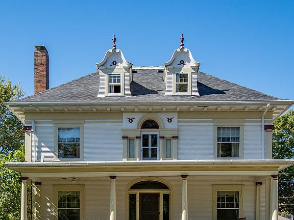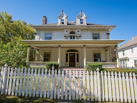 Built around the turn of the 20th Century, this enchanting American Four Square home boasts 4,080 square feet of living space. With a classic "white picket fence" surrounding the home, its splendor is evident to all who pass by. Relax on the front porch swing, contemplating the good life that awaits you. Your guests will be impressed when they enter the expansive foyer and view the grand staircase. Retreat to the library, with charming built-in bookshelves. Gather guests in the living room around the brick fireplace. There's plenty of room to host dinner parties in the formal dining room complete with window seat. Galley kitchen has some original cabinets with glass doors, open shelving for loads of charm, and room for casual dining. A family-room addition completes this special place for people to stay connected. The amazing front stairs lead to the 2nd floor bedrooms. Former "maid's room" has water access to allow the room to be used as a laundry room. Back stairs lead to the 3rd floor ballroom, now being used as a bedroom/suite. Perfect for teenagers, kids returning home from college, guests or option to turn into a master bedroom retreat. Bonus: ¾ bath on 1st floor. Special features include beautiful hard wood floors, pocket doors, wheel-cut decorative windows, original gas and electric chandeliers and sconces, exquisite architectural details and rich trim work. This would be an incredible family home, bed & breakfast, retreat center, photographer's dream space-- only limited by your imagination. Owners have ordered garage roof and back house roof to be replaced prior to closing. Wired for a security system and includes Buyer's 1-year home warranty.