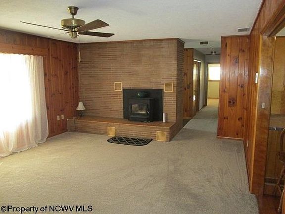 Features 3 city lots in Elkins totaling 0.54 acres; Garage large enough for four cars/workshop. New roof in 2010, new windows 2006, new carpet, large outbuilding, 2 fireplaces, new furnace 2011. Electric heat in family room has been disconnected. There are hardwood floors under the carpet of the living room, hallway and three bedrooms.