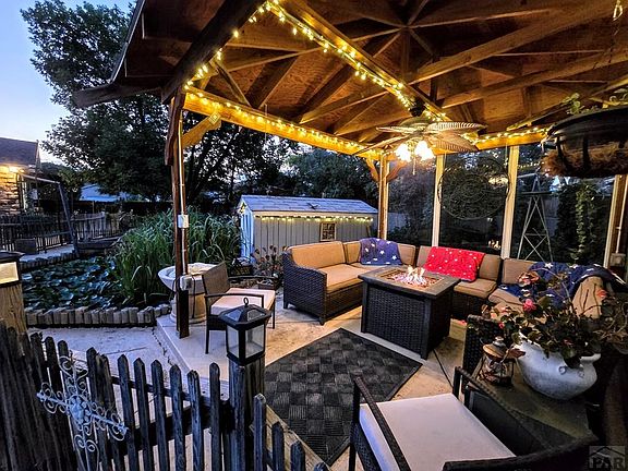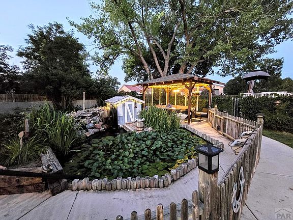 Welcome to a one-of-a-kind gem, an original McCulloch show home in Pueblo West where every detail tells a story! This extraordinary home is a piece of history crafted to charm and inspire. Step into a landscape that feels like it leaped straight off the pages of The Secret Garden. A meticulously designed paradise with a breathtaking 3,000-gallon Koi Pond featured in the Pueblo Better Home & Garden Pond Tour. Imagine evenings relaxing under the pergola and fun-filled days in the above-ground swimming pool with a beautiful wooden deck. Enclosed patio with floor-to-ceiling windows offers a stunning view of your backyard oasis. This space is perfect for hosting a lively gathering or a quiet family dinner. Inside discover a spacious layout designed for comfort and relaxation. This layout is perfect for multi-generational living. Chef's delight kitchen with granite countertops, tile backsplash and custom kitchen cabinetry using repurposed materials from historical sites in Southern Colorado, blends the charm of the past with modern convenience. Enclosed deck provides year-round enjoyment. Fully operational greenhouse offers endless possibilities for sustainability and gardening enthusiasts. This home is ready for you to move in and start creating memories. Located just steps from the Desert Hawk Golf Course and 8 miles from the North Shore Marina at Lake Pueblo. This captivating property is a rare find and priced to sell quickly. Make this enchanting home yours today!