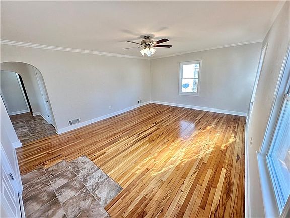 This Lovely home is MOVE in READY!!! Your Large Front deck welcomes you into the LR featuring hardwood floor, crown molding, ceramic entry, DR w/ ceramic floor, crown molding, arched doorways & coat closet. Updated Kitchen, w/dishwasher, microwave, a set of pull out lower shelves, pantry closet & ceramic floors. Laundry rm is off the Kitchen w/ folding counter + upper & lower cabinets. Your Bedrooms boasts cedar lined closets. Hall bath w/ linen closet. The basement which is ready for your final finishing touches features freshly painted walls, 2nd full bath w/ shower and 2 rooms partitioned off as well as a door to the side yard. Vinyl thermal windows, HVAC is 2 years new, New electric from city to the 200 amp breaker box, all outlets were rewired & grounded, newer roof, gutters with Leaf Guard for easy maintenance. 2 Car Detached garage. Come check out your Next Home!!!!