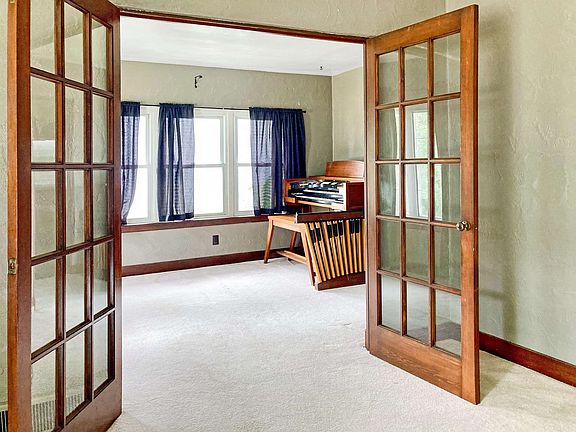 Within walking distance to Eastland K-6. School The home is a Classic 1946 1 story stucco frame home with detached garage. Large fenced backyard has a spacious patio, room for a garden and beautifully landscaped for spring and summer blooming flower beds. Inside are a cozy dining nook off the kitchen. Enter the home at the front entry door to a wide foyer, ceramic tile flooring. The large living room has a wide picture window with full curtains to close for privacy and limiting light. The side room was used as a music room / office area. There are original multi-pane french doors to close or stay open. The spacious kitchen has ample cupboards and counter space. All appliances stay. There is a dining nook just right for friends and family to enjoy meals or just sit talking or playing board games. View from the sink window gives a full overlook of the beautifully landscaped back yard. The main level is complete with 2 bedrooms with nice roomy closets and full bathroom with tub/shower. The lower level basement has many storage shelves and closing cupboards to use for pantry items and canned goods. The backyard is totally enclosed with a privacy fence and is beautifully planted with flowers and paved paths through the grass areas and borders. The backyard has a wide shaded cement patio and back entry to the home and basement. This is a perfect size home for many stages of life and very nicely maintained. Shown by appointment.