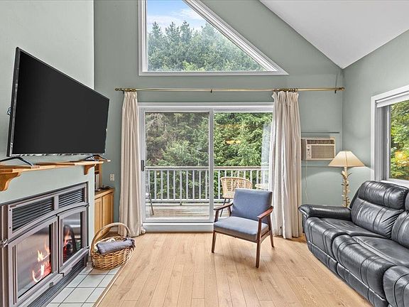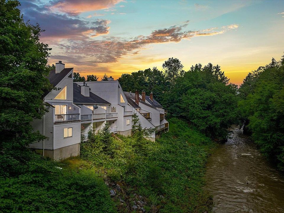 Indulge in the captivating allure of Vermont living by immersing yourself in this charming condominium located in the bustling heart of Stowe Village. Bask in the warm and inviting ambiance as you unwind by the cozy fireplace, soaking in the picturesque views of the tranquil meandering river that serves as the perfect backdrop to complement a contemporary lifestyle. Start your day off right by stepping out onto the deck, savoring your morning coffee while being serenaded by the soothing sounds of the river below. This end unit features two generously proportioned bedrooms, 1.5 bathrooms, and a versatile loft space that can be utilized as overflow sleeping quarters or a cozy TV room. You'll enjoy the convenience of having an array of dining establishments, shopping destinations, and the Rec. Path within easy walking distance. With the added bonus of a one-car garage, your daily living experience is further enhanced.