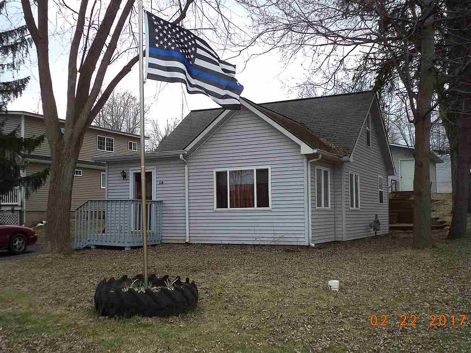Great home in a nice neighborhood, with a view of the lake and 1 block from the city beach. Lots of space with 3 BR and 2 BA. You will find the home in great condition and move-in ready. There is a nice deck area to enjoy entertaining family and friends. An oversized garage is a super asset to the property. Newer windows, siding and city sewer. Call quickly! This one will not last at this price!!