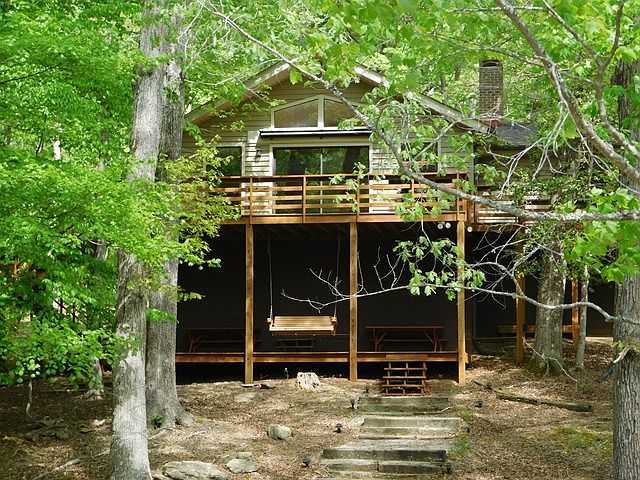 REDUCED! True Lake Cottage, plenty of glass - Large open floor plan consisting of living, dining and kitchen areas with beautiful heart pine flooring. Rustic brick wood - burning fireplace with heat recirculation makes this a perfect vacation home throughout the year. Bright & open after 2016 interior renovations including new paint, carpet & ceramic top-stove. Additional improvements include a new roof & gutters 2016, new storage at boathouse 2013, new boatlift 2011, . Great spot to come and enjoy a restful weekend or get on the water for skiing, wakeboarding, kayaking and fun. Enjoy sundeck above boathouse or rest on your waterside deck in the shade! Enjoy fire pit in the evenings by the lake. Closed in area below home that would be great place for storage, workshop or place for kids to hang out and play games - whatever fits your needs. Nice cove only 5 lots off of main Lake!