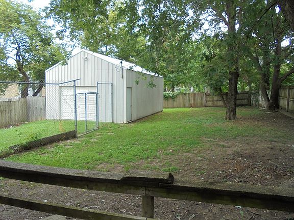 NEW ROOF! New exterior trim. This property has 5 bedrooms and 2 full baths. Vinyl siding, pretty double front doors with leaded beveled glass. Grand staircase, living room, large kitchen, extra family room off kitchen with double doors to backyard. 30 X 18 steel detached garage. Fenced backyard.