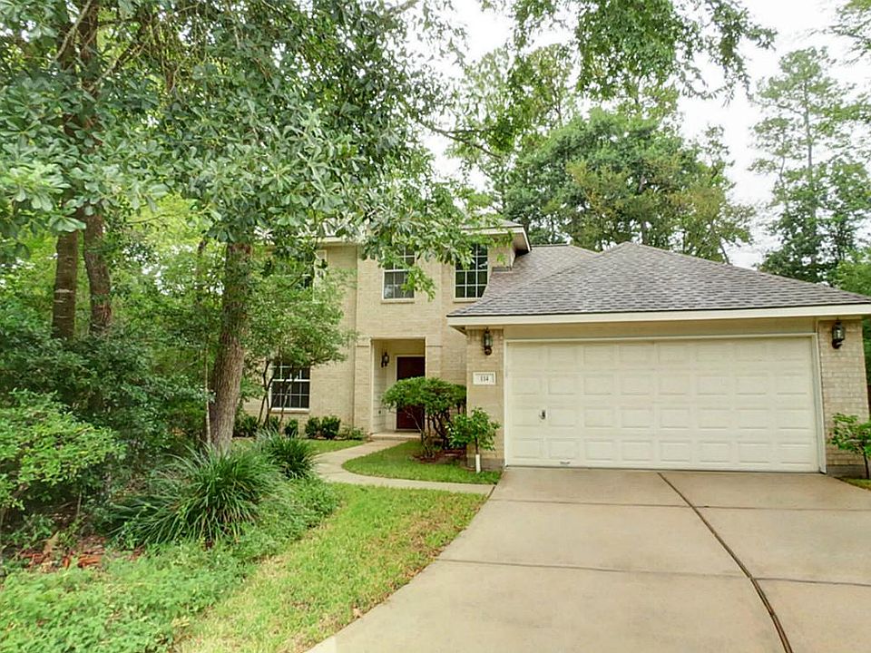 Four bedroom home on large, wooded cul-de-sac lot! Features fresh interior paint and new carpet throughout. Kitchen boasts new stainless steel microwave & Electrolux stove/oven; family room w/wood flooors & gaslog fireplace; private study w/French doors & wood floors; master suite downstairs w/two sinks,garden tub,separate shower & walk in closet; 3 secondary bedrooms upstairs-all w/walk in closets. Huge pool sized backyard-very private lot w/mature landscaping. Don't miss this one!