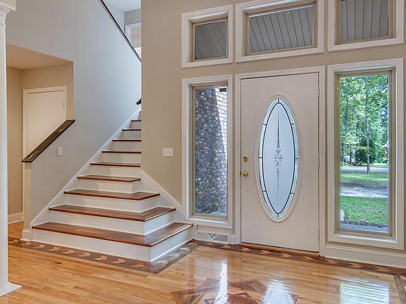 This gorgeously maintained home sits on two acres of land on Sandel Lane in Summerville, SC. With four bedrooms, two and a half baths, generous living space and stylish finishes, you'll enjoy a perfect setting for relaxing and entertaining. As you enter the foyer you immediately notice the unique custom flooring which combines three different tones of wood to create a medallion pattern in the center of the foyer. This custom woodwork flows throughout the entire home. The living room has a built-in media center that parallels a stunning custom made fireplace with an oak and walnut mantel. The spacious and open kitchen is lined with cabinets providing ample storage space. This airy kitchen also features a gorgeous built-in island breakfast bar.