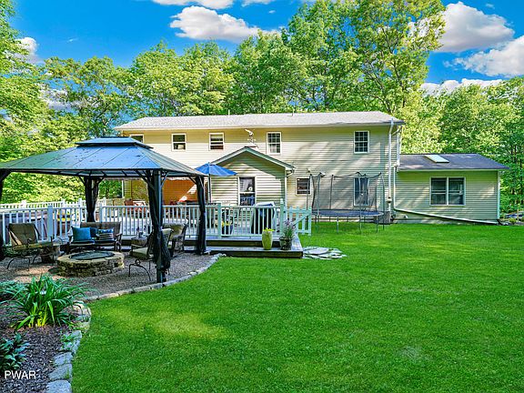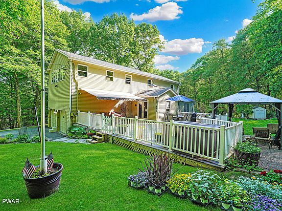 YOUR PLACE OF PEACE AND PARADISE IN PIKE COUNTY JUST HIT THE MARKET! Welcome to your dream home in the desirable Delaware Valley School District, just minutes to downtown historic Milford, and no HOA! This stunning single-family, four-bedroom, 2.5-bath residence offers a perfect blend of comfort and luxury, ideal for modern living and delivering on all things nature and beautiful outdoors. Enjoy year-round comfort with central air conditioning and propane forced hot air for heat. The expansive, manicured backyard is a true oasis, featuring a shed, a charming tree house, an above-ground pool with a deck for easy access, and a custom water fall feature. Additionally, a hardtop patio gazebo with a fire pit offers the perfect setting for outdoor entertaining. The home boasts an open-concept design with a dining room that seamlessly connects to the living room, perfect for gatherings. A cozy family room extends from the dining area, adding more space for family activities with a beautiful beamed, high ceiling, skylights, hardwood floors, and propane fireplace. The well-appointed kitchen flows into an open mudroom, leading to a large back deck with an awning, ideal for outdoor dining and relaxation. Step into the spacious primary bedroom featuring an en-suite bath with a luxurious soaking tub and a large walk-in closet. The bright and airy finished basement is bathed in natural light, providing a welcoming space for relaxation or entertainment. This home is not part of a homeowners association, giving you the freedom to enjoy your property without restrictive covenants. Don't miss the chance to make this incredible home yours! The local Milford area offers tons of hiking, waterfalls, river rafting, lakes, great restaurants, shops, breweries, nearby skiing, waterparks and so much more! You won't want to miss this opportunity!