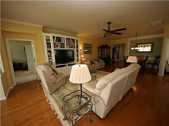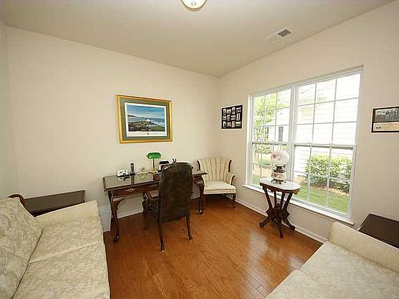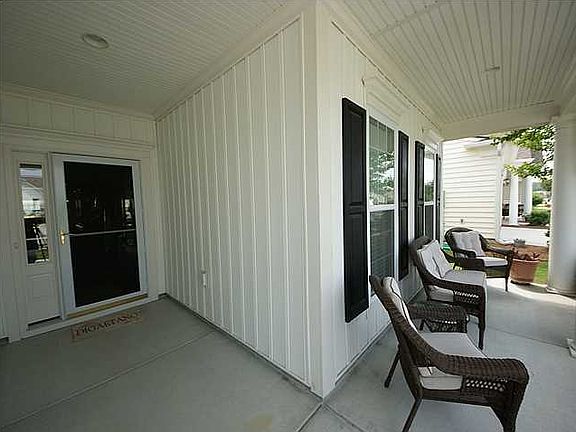 This Vernon Hill model sits on a nicely landscaped lot. This home offers many features that cost extra when purchased in new construction. Home cannot be duplicated for the sales price. Enjoy relaxing mornings and evenings on over sized patio overlooking one of the communities many lagoons with lighted fountains. Patio also has outlet for your natural gas grill. The entrance foyer, great room & office have hardwood flooring while the 3 bedrooms have wall to wall carpet and the kitchen, sun room, laundry room and 2 baths have upgraded ceramic tile floors. Entrance foyer & dining area have wainscoting and crown moldings. Kitchen features granite counter tops complete with back splash, stainless steel appliances including cook stove, built in microwave & built in dishwasher. Great room features ceiling fan, crown molding and custom built ($4000) entertainment center. Sun room has shades installed that will remain with the home. Master bedroom has tray ceiling and master bath has both soaking tub and separate shower along with dual vanities all leading into large walk in closet. Garage has pull down stairs leading to attic storage and home has energy efficient tech shield roofing. Storm doors ($500) on both front and back door provide the airy feeling on the many beautiful days that are enjoyed living in this gated active adult community. Home also has he levered door handles on all doors.