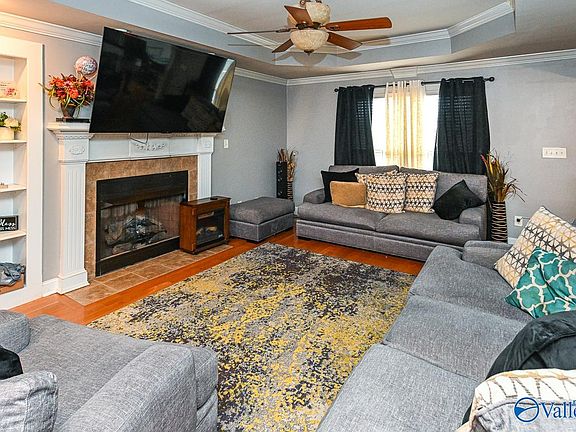 - Features: Ceiling Fan(s), Crown Molding, Fireplace, Recessed Lighting, Tray Ceiling(s), Wood Floor