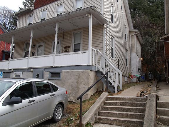 Reduced! Well kept semi-detached home on east side of historic Jim Thorpe. Property features kitchen-ample cabinets, pantry, dining room, living room & mudroom (enclosed porch off kitchen)-1st level; 2nd level features 3 bedrooms & 1 full bath (walk thru bedroom to bath); 2 add'l rooms on 3rd floor could become more living space w/added heat plus lg. rear storage room. Home has oil radiator heat, 100 amp electric service, newer windows. Outside features front porch w/winter view of Mt. Pisgah, 1 off-st parking spot in front of home. Basement has outside access via door at front for easy in & out. The rear yard is over 100 feet deep but needs grooming, could be a lovely area to enjoy the outdoors w/some TLC. Affordably priced, low taxes-same owner since 1952!!!