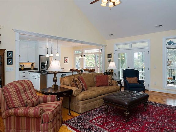 Charming waterfront home on Lake Hartwell. Custom built with only the finest details. This craftsman style home is "move-in-ready" for your vacation, weekend get-away or retirement. Upon entrance, there is a warm and welcoming front porch with a decorative carved stone walkway leading to the front door. The interior offers the ultimate open floor plan with open flowing spaces and lots of natural light. The vaulted great room features a floor to ceiling wood burning stone fireplace with built-in bookcases, beautiful heart pine hardwood floors and lots of windows to capture the lake views. The great room is open to the designer kitchen. The kitchen is highlighted by a commanding center island, stainless appliances, double/convection ovens and plenty of cabinet and drawer storage. Off of the foyer, is a very spacious dining room which is open to the great room for ease of entertaining.