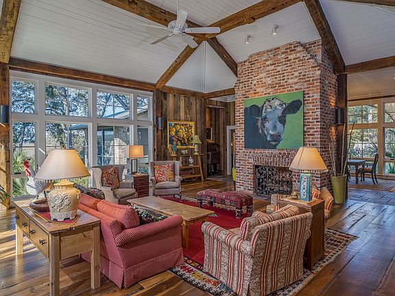 This magnificent home is situated high above the marshes of Callawassie Creek. From almost every room in the home you may enjoy spectacular views of the marshes and tidal flats, teeming with large migratory wading birds. This beautiful 10 acre parcel with abundant native foliage, live oak and magnolia trees provides complete privacy.While enjoying the views of the marshes, you will not want to miss the exquisite design this home has to offer. There are vaulted ceilings in the great room with floor to ceiling windows. The kitchen cabinets and interior doors are all custom made by the Amish from reclaimed barn boards. The brick used in the home is reclaimed Savannah brick and the slate floors in the entry and hall are laid in the Versailles pattern.Several of the custom features of this home are listed below:Kitchen - sink is carved from a single piece of soapstone; soapstone counter tops; Wolf 6 burner gas cook top and range; 46 inch Sub-zero refrigerator / freezer; double Fisher/Paykel dishwasher drawers; Thermador wall over, microwave and warming drawer.*Two tankless water heating systems: one for master bath and one for kitchen and laundry.*Master Bathroom: Custom made vanities by Tribble of Atlanta; granite counter tops; each vanity has a floor heater. radiant heat in floor in master bath; Bain air tub.*Windows and exterior doors: Marvin*Remote control gas fireplaces.*Living room and library have art lifts covering built-in TV's.*Screened porch - built-in 30 inch Lynx gas range; wood burning fireplace.Guest Cottage:*Full kitchen - gas stove, microwave, refrigerator and dishwasher.*Granite counter tops in kitchen and baths*Tankless water heater*Remote control gas fireplace*Art lift covering built-in television*Living room walls are reclaimed barn boardsWith all of this you may still find time to enjoy all of the amenities Spring Island has to offer.