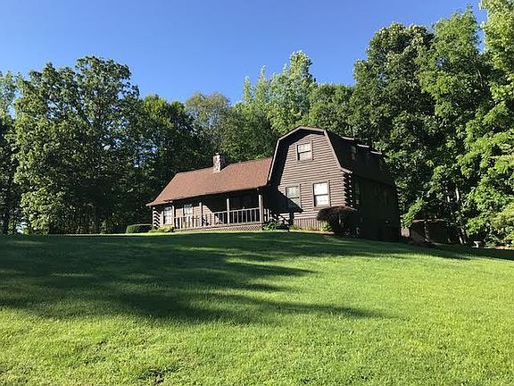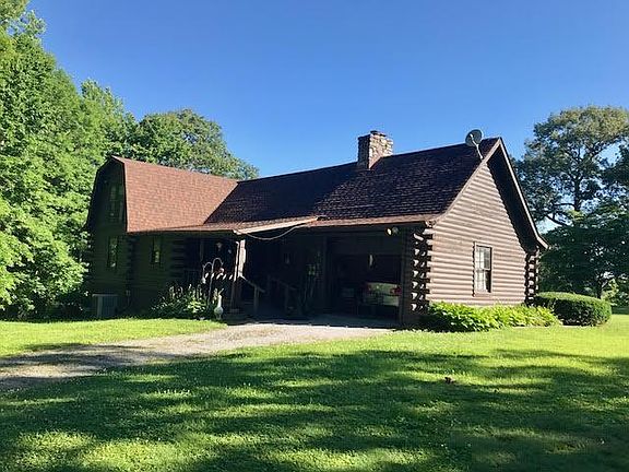 Log home on 3.2 Acres. Vaulted ceilings in great room w/fp. 3 BR 2 BTH with full basement. Covered front & back porch. Garage in basement and attached garage.