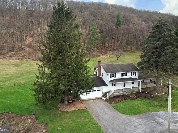 Where privacy and tranquility meet at the foot of Egg Hill Mountain in the quaint town of Spring Mills near the joining of Sinking Creek and Penns Creek. This tastefully remodeled two story farmhouse sits on 8 acres of partially open fields and partially wooded lot at the end of a private lane. You will appreciate the craftsmanship of the custom cabinetry, vanities, and trim throughout the home. As you enter on the home from the covered front porch you will find hardwood floors thought the dining room and kitchen. The kichen has access to the near patio for easy grilling and entertaining. Off of the kitchen and dining room is the den and living room. The living room has a wood stove and vaulted ceiling with an abundance of natural light. Also, located on the main level is a full bath and the laundry room/mudroom also off of the back patio. Upstairs you will find three sizable bedrooms and a full bath. Off of the primary bedroom is a 6x24 screened in porch to enjoy those quiet summer evenings in the privacy of the back of the property. Additional spaces on the property included a workshop, barn and shed for extra storage. Located just 17 miles from State College and Penn State University.
