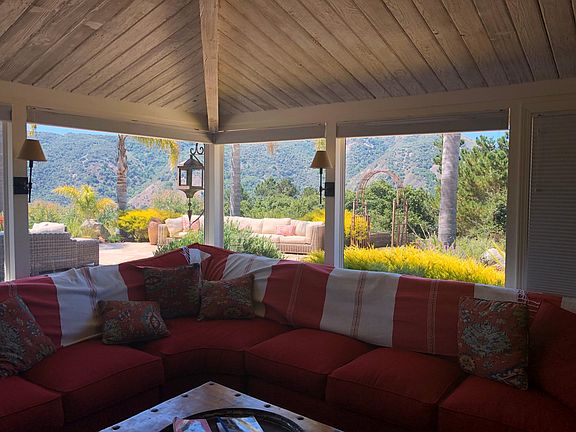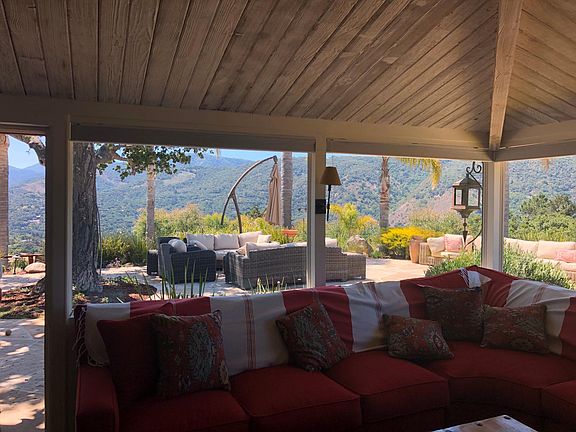 For Essential commercial use, long term rental or shelter in place only during COVID-19 Luxevaca com In the hills above Carmel Valley Village, a wine lovers destination, Carmel Valley Top of the Hill is a 2.5 acre treasure surrounded by palm trees and 280 degree views. The adobe Top of the Hill has charm, character and history, has been restored to its original Spanish style and is filled with treasures from Mexico, Spain and South America. Carmel Valley Top of the Hill is five minutes to fine dining and wine tasting in Carmel Valley Village and 20 minutes to Carmel by the Sea destinations including beaches, shopping and restaurants and numerous golf courses in Pebble Beach. Garland Ranch and numerous other hiking trails are just minutes away. Enjoy the views from the hot tub which overlooks nearby hills, play bocce ball on the court, make smores over the large outdoor fire pit, while enjoying the views of the Santa Lucia hills from every direction. The top of the Hill has 4 guest rooms with one California King bed, three Queen beds. Two bedrooms have TVs. There are three bathrooms in the house, including the master en suite bathroom with large shower and separate tub. The large, custom master bathroom has french doors that open up to the courtyard and back yard. The Top of the Hill home has a fully-equipped kitchen located next to a dining room which is surrounded by windows overlooking the valley. The dining room can comfortably seat up to 12 people. The large family room has a TV, DVR, books and games with a game table that seats 8. There's a laundry room with washer and dryer. Multiple flagstone patios wrap around the Top of the Hill. Relax in the outdoor day bed or sit at one of the three outdoor tables. The Top of the Hill is located at the end of a quiet lane that climbs to the top of a hill, giving guests endless views of the hills. Plenty of parking is found inside the private, gated property. The property is pet friendly. There is an additional fee for pets outdoor tables. The Top of the Hill is located at the end of a quiet lane that climbs to the top of a hill, giving guests endless views of the hills. Plenty of parking is found inside the private, gated property. The property is pet friendly. There is an additional fee for pets. For Essential commercial use, long term rental or shelter in place only during COVID-19. Fully Furnished Utilities included