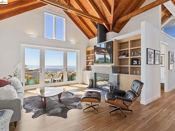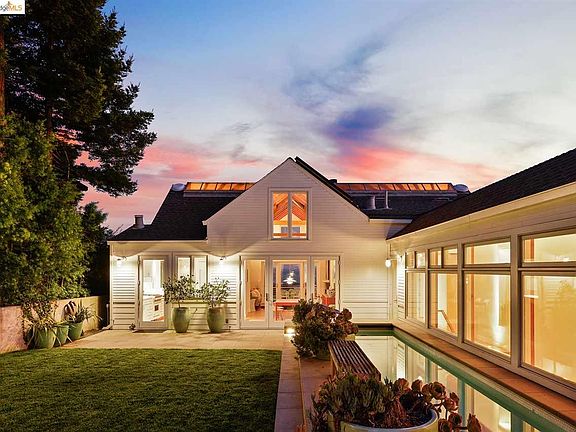 With a seamless blend of innovative architectural details, walls of windows and panoramic Bay and San Francisco views, this dramatic Dwell-inspired Contemporary is in perfect harmony with the spectacular setting. The light-filled, open floor plan provides the ideal space for modern living and entertaining, with level-out access to a spectacular courtyard garden, complete with salt water lap pool, expansive lawn and sweeping canyon views. The luxurious master retreat opens onto a private deck and spa as well as a one-of-a-kind "Eagles Nest" loft home office overlooking the pool and garden! Two additional bedrooms and a bonus space with full bath and separate entrance, offering unlimited possibilities for in-laws, extra bedroom or family room, completes the dramatic living space. This magnificent home, with ever-changing views morning until night, offers the ideal respite from today's busy world. City of Oakland, Berkeley mailing ONLY.