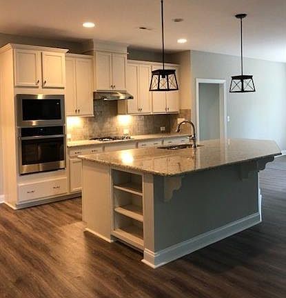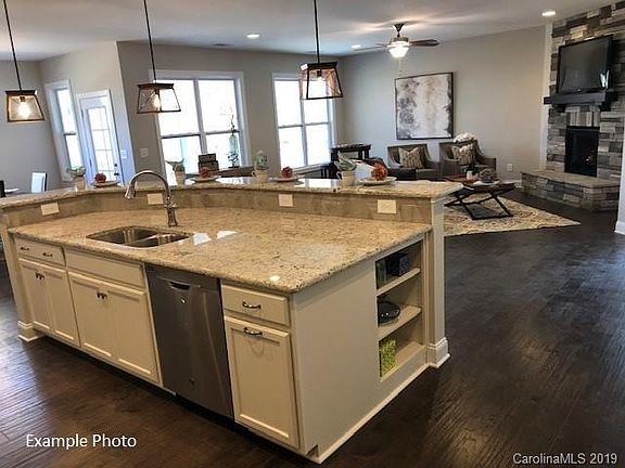 Popular Ranch Home with 3 car front entry garage! Partial stone façade, front porch, & screened covered back deck. 2 bedrooms & flex room on 1st floor, plus open kitchen to family room with stone to ceiling fireplace. Kitchen includes white cabinets, wall oven, gas cooktop, large island, & breakfast nook. Upstairs bonus room, bedroom, & full bath. One of the only neighborhoods in the Mooresville with new construction and ½ acre wooded homesites!