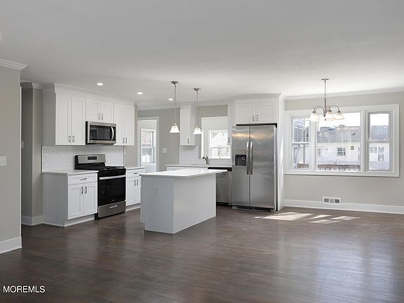 Come see this completely renovated 3 bed, 2½ bath ranch boasting over 2400 square feet of finished living space in Brick's prestigious Midstreams section. The home is MUCH LARGER than it appears from the street. The OPEN CONCEPT living room, dining room, and kitchen is bright and airy with multiple bay windows and gleaming hardwood floors. The beautiful white kitchen comes complete with stone counter tops, stainless steel appliances, and stunning subway tile backsplash. The sun room opens to a large rear yard and grill deck. Updates include fresh paint, (3) updated bathrooms, and a new HVAC system. The finished basement has a HUGE rec room, bonus room with full bath and adjoining office, and ample storage space.