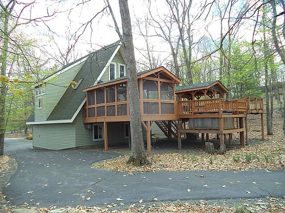 Wonderful Masthope home located at the top of the mountain for Ski-In and Ski-out. Great opportunity to own a home for vacation or year round OR as an investment. This home has a great rental history. Updates include new kitchen with granite countertops and stainless appliances, new siding, new windows, & new roof with 50 yr guarantee. Home also has sauna and whole house generator. Come take a look.