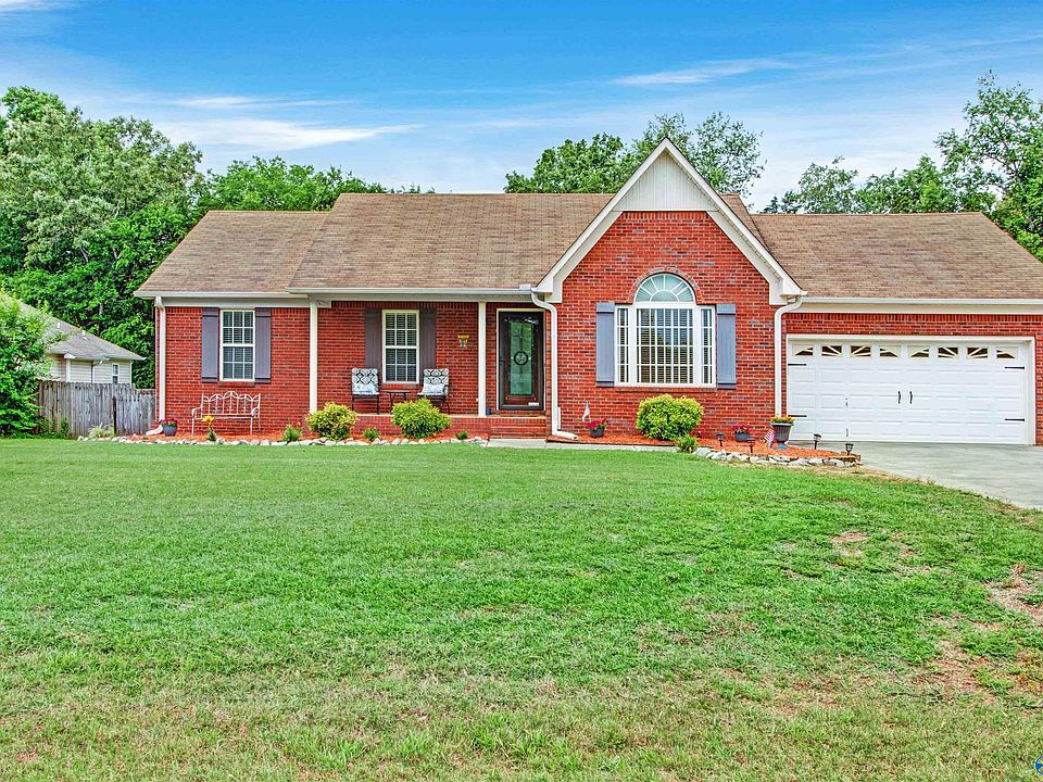 Fabulous full brick ranch on large private lot w/ detached garage, workshop & animal stall, No HOA. Vaulted ceiling in the great room w/ custom stacked stone wood burning fireplace w/ electric insert. Wood flooring in the living areas and master bedroom, tile in kitchen and baths, neutral paint throughout. Sit outside on your covered deck and enjoy the game or your morning coffee, TV on deck remains. Just a short 20 minute to downtown Huntsville close to shopping, restaurants, and schools.