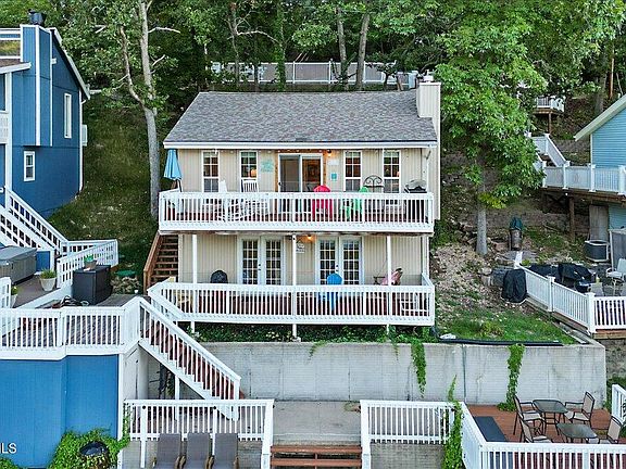 Come check out this adorable two-story lakefront home in Linn Creek, MO on MM 28! This 3 bedroom, 2 bath home comes fully turn-key with a 2 well private dock (removable decking in the second slip), located in a cove location and short-term rentals allowed! Many great features include vaulted ceiling, an abundance of natural light, new luxury vinyl plank flooring, granite countertops, newer cabinets, upper & lower decks, newer windows, gas fireplace, 8,000 lb. hoist, new rip rap, newly installed septic system (1 year old). Sellers have recently done over 50k in updates, and it shows! This home is perfect for an investment or entertaining and enjoying the lake life!