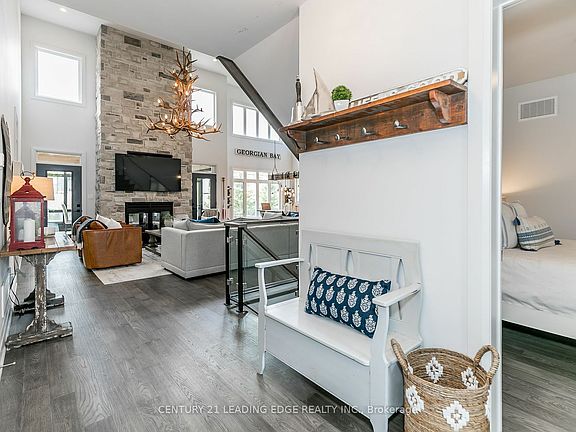 This one of a kind Jasper model is located in the Bayside community. Privacy awaits with this setback home, siding onto trees, situated on the largest lot in the subdivision. This 7 bdrm, 4.5 bath, bungaloft w 4500sqft of finished living space will take your breath away. Relax in front of the magnificient two storey stone, two sided wood burning fireplace. Upscale appointments throughout! Primary bdrm features his & hers closets, huge spacious ensuite & w/o to private deck. Bdrm 2 on main floor w 4pc ensuite. Expansive kitchen w servery & custom pantry, oversized laundry/mudroom w heated floor for all of your active gear. The upstairs open air loft has two bdrms & 4pc bath. The open to below basement w radiant heated floor, media, games, exercise, three bdrms & 4pc bath. Three season Muskoka rm. Close to GBC, Georgian Peaks, Georgian Trail, beaches & quaint towns of Thornbury & Clarksburg.