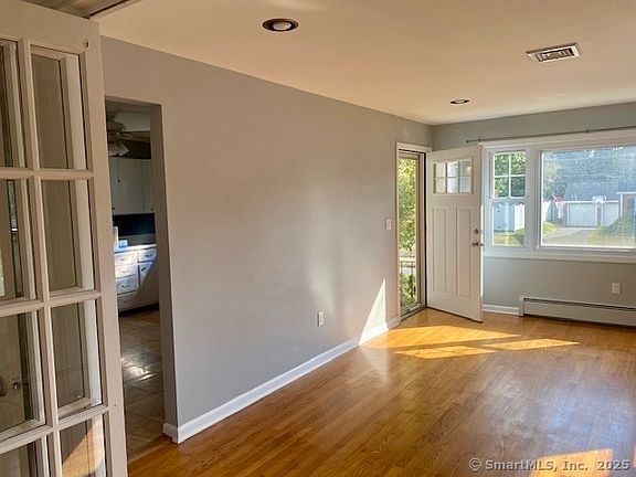 Welcome to this charming Paradise Green Ranch, perfectly situated within walking distance to the park, shopping, restaurants, and so much more! This well-maintained home offers both comfort and convenience. Step inside to find a light-filled layout with hardwood floors, central air, and a cozy fireplace for those crisp evenings. The DINING ROOM CAN EASILY BE CONVERTED BACK TO THE THIRD BEDROOM, providing flexibility to suit your lifestyle needs. The spacious kitchen offers stainless steel appliances and ample cabinetry, making it ideal for everyday living and entertaining. The FINISHED LOWER LEVEL provides endless possibilities-perfect as a family room, home office, gym, or guest space. Outside, enjoy a level, fenced backyard with a private patio, ideal for gatherings, play, or relaxation under the shade of mature trees. A storage shed adds extra convenience. Truly a home where you can just move right in and enjoy. Seller ask that all offers be placed on 4 page Smart MLS form. Co-Agent and owner are related. HIGHEST AND BEST OFFER BY SATURDAY NOVEMBER 1ST. 1PM.