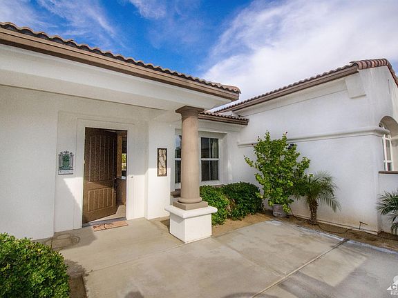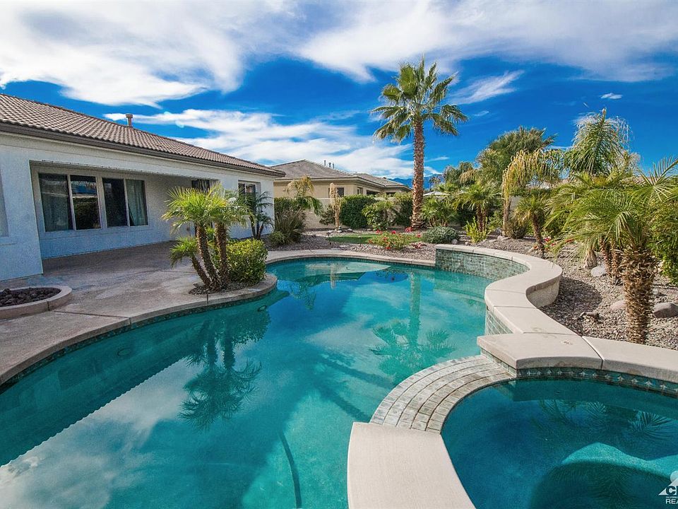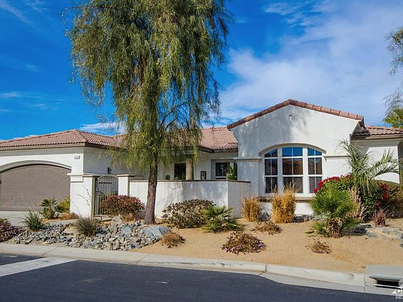 Stunning home behind gates in popular Palm Desert location! Steps to Freedom Park, dog park and Ronald Reagan Elementary. Gated courtyard greets your entry to this fabulous home w/3 spacious en suite bedrooms (baths in each br) with resort style living! Cook's kitchen w /tile flooring set diagonally Frigidaire appliances, elegant granite counters and a sunny eating area w/ views of the spectacular backyard! Formal dining room is steps from the kitchen and great room w/ fireplace! This lovely home shows pride of ownership and is model-like w/custom paint throughout and 10' vaulted ceilings! Sumptuous master suite w/sliders to the backyard, unique ceiling fan and the master bath has separate tub and stall shower w/2 sinks and walk-in closet! One of the guest bedrooms has a separate entrance! Low maintenance backyard w/pebble tech pool w/ beach entry, lounge chair and umbrella stand, spa, fire pit and covered patio! Security system and tandem 3 car garage! This deserves the top of your list!