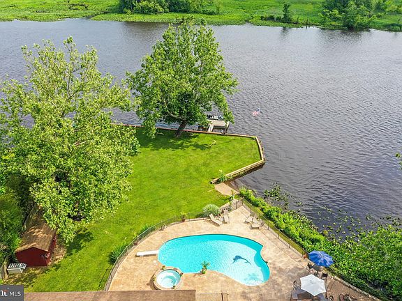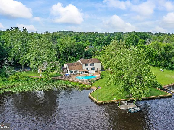Location Location, Rare Mount Laurel Waterfront home with private dock and boat ramp, includes 200 feet of bulkhead and 200 feet of Retaining Wall. Great panoramic views from your Anthony Sylvan Gunite salt water pool with raised spa and waterfall that was just re-plastered. There is an outdoor kitchen with Granit counter tops, hot and cold water, built in refrigerator and plenty of 12 Volt or Solar lighting. The fire pit is really nice to have after you get out of the pool or spa at night. This is the only home on a Cul-de-sac that backs up to township and state owned land. Your view is across the Rancocas Creek and a County Wild Life refuge, which is next to Westampton Park , that is surrounded by the Rancocas State Park. You can step right onto your boat and go to the local sand bar or take a scenic ride to the Delaware River, Penn's Landing or Camden Water Front which includes The Camden Aquarium and outdoor concert hall. You can go down stream to enjoy a sunset Cruz and see what wild life you come across and take advantage of some great Bass fishing. Custom built home with lots of goodies like tankless water heater, central vacuum, 3 zone high efficiency gas HVAC, ( all 3 about to be replaced ), city water, new FUGI septic system last year and owned Solar system. This is no lease, you would get all of the free electricity and sell the SREC too, since 2014 seller has sold and received $28,586.02 tax free. Charge your new electric car for free !! Enter the home into a large open family room with a wide open view. The home has Anderson windows throughout, vaulted bedroom ceilings, recessed lighting through out, Kraft Made Kitchen Cabinets with granite counter tops and Brazilian Cherry Hardwood flooring. The kitchen has a double wall oven and 5 burner electric cooktop. If you prefer a gas cooktop it can be installed. There is a lower Sunroom with wet bar , refrigerator and ice machine that leads you directly out to the pool and waterfront. The kitchen is surrounded by a generously sized dinning room also with Brazilian Cherry hardwood and living room that has a space for a recessed big screen TV. Upstairs is the master bedroom with a big walk in closet/dressing room and adjoining Marble bathroom that includes a seamless glass shower stall , heated Jacuzzi Tub, Double sink vanity with matching marble counter top , California faucets, vaulted ceilings, and more great views. There are 3 more large bedrooms all with vaulted ceilings, recessed lighting and ceiling fans. The oversized 2 car attached garage has inside access. The second garage is detached which is 25 X 40 with a custom finished floor, has two 12 foot wide over head doors, 4 sets of sliding glass doors also overlooking the river and brings in a lot of natural light and the breeze comes right through . There is also a large 12 X 40 storage room on the second floor with outside steps . There is an in-law suite ( 5th bedroom and 3rd bath ) that has a private outside entrance, kitchen/living room combination, this second kitchen also has granite counter tops, it has its own washer and dryer, its own thermostat and full bath with stand up shower. Also has and a great view. The In-Law suite has a $1000 per month rental value. Which is the same amount as the real estate taxes. Combined with the owned solar system which gives you next to no electricity bill and that makes this home very economical. Imagine, real estate taxes covered and next to no electricity bill ! ! Sounds to good to be true. But it is true ! See uploaded documents, since 2014 seller has sold and received $28,586.02 tax free. The dock and boat ramp area are legal and there is a lease from the State of NJ. See uploaded documents.