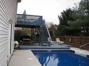 Beautiful multi-level home with balcony overlooking living room, cathedral ceilings, open floor plan, nice workable kitchen, family room with fireplace, good storage. 2 tier deck that leads to the 14x28 in-ground pool. It's a must see and a sure fit for any family!