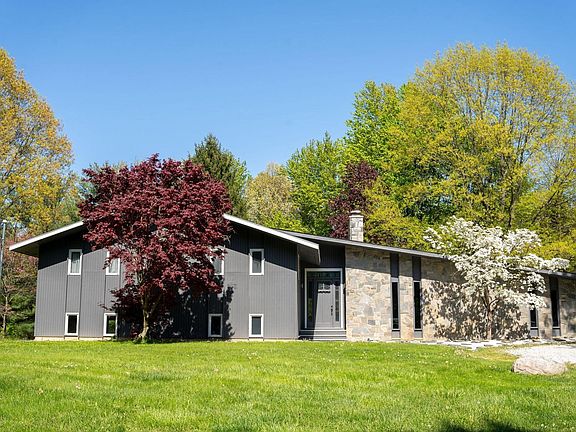 This is the closest thing to living in the mountains that West Lafayette offers! You have your own personal retreat center 5 miles away from Purdue University, surrounded by mature pine and hardwood trees, on a 5-acre yard to play and watch deer graze! You will be welcomed by vaulted ceilings and a magnificent stone chimney as you pass under the 9ft tall stained glass doorway. The open-floor plan with a large quartz island in the middle of the kitchen/dining room brings the members and groups together. Enjoy taking in the views of nature either on the back deck or from the warmth of the fireplace in the winter. This one-of-a-kind, split-level home is solidly constructed with a slate stone and redwood panel exterior, resistant to mold and insects. Most all of the appliances have been updated in the past 5 years (heat pump, AC, stove/oven, dishwasher, microwave, garbage disposal, water-softener with iron-filter, hot water heater, pressure tank, and washing machine). An attached garage and a spacious detached 2-car garage with an 8ft tall door are ideal for projects and storage. There is also a 400Amp breaker box capable of powering a well-equipped metal/wood workshop. Enjoy no-buffering online streaming with fiber-optic cable for high-speed internet. Stroll around the 1/2 mile loop private drive of the Timbercrest neighborhood, enjoying the natural beauty with every step.