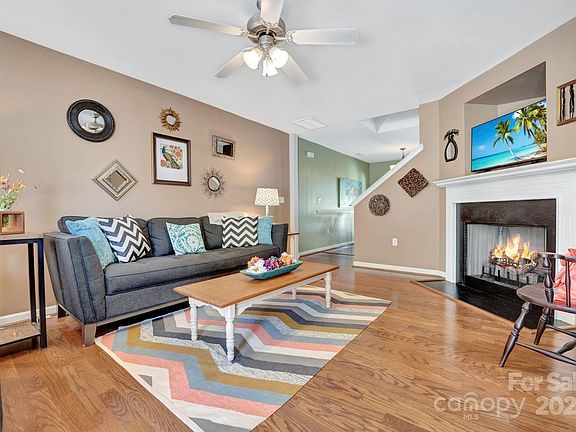 Welcome to Fletcher's delightful Townes at Connor Creek! This 3 bedroom, 2.5 bathroom townhome is ideally located and offers move-in-ready comfort featuring a gas corner fireplace, a cozy living room, and a well-equipped kitchen with a large pantry. French doors in the dining area lead to a private patio and fenced yard. The primary suite boasts ample space, two closets, and an en-suite bathroom with dual vanities. Two spacious bedrooms share a conveniently located bathroom, with laundry facilities on the second level. A single-car garage with additional storage and parking spaces located right out front offers additional conveniences The community features a playground, a creek, and is dog friendly. 114 Torrington is both affordable and easy to live in- exterior building and yard maintenance are both provided.