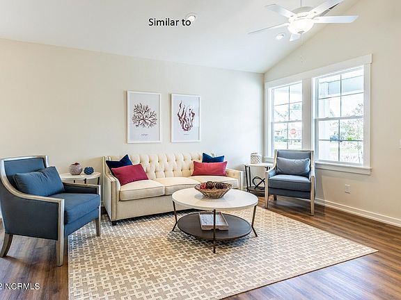 Your Search is OVER! The Carolinian is a charming coastal cottage featuring one level living with an efficient use of space. The open layout offers vaulted ceilings, 3-spacious bedrooms, large great room, gourmet kitchen with center island that is the perfect for entertaining and two covered patios to enjoy the outdoors. Designer features and upgrades include luxury vinyl tile (LVT) floors in main living areas, granite countertops, stainless appliances, tile floors in full baths, upgraded kitchen cabinets, deluxe owners' bath with dual sinks and semi-custom tile shower, craftsman trim throughout and luxury lighting package. Waterside Villages is a master planned, gated community with amenities that include clubhouse, swimming pool, basketball court, pier, shallow water marina, and picnic pavilion. Located 12 miles from the OBX beaches, Waterside Villages is in the heart of Grandy and near three public golf courses and only minutes to local shopping and restaurants. Taxes based on land only. Buyers to pay one time capital contribution fee of $575.00 at closing.