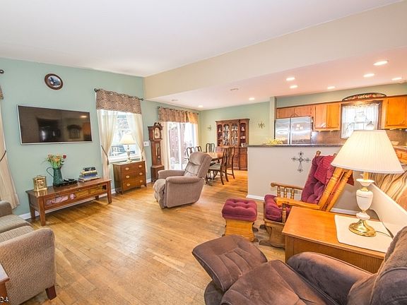 Nature abounds in this lovely and peaceful location with hiking trails, fishing and beach club nearby! This 3br 1.5ba ranch sits on a corner lot with wooded mountain views and a babbling brook. An open floor plan welcomes you into the living room/dining room combo and kitchen. Sliders off dining room lead to outdoor deck and yard. 3 good sized bedrooms and an updated, light and bright full bath complete the first floor. Walk out basement has family room with fireplace, a half bath, laundry and entrance to the one car attached garage! Sliders lead to patio and rear yard. Non Flood Zone!