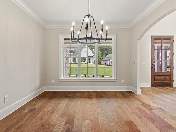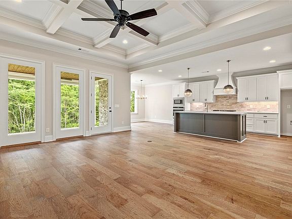 The Pine Ridge Plan by Sims & Co features an ideal layout with 5 bedrooms, 4 bathrooms, and ample functional space. This home showcases excellent craftsmanship & attention to detail throughout. The beautiful foyer leads into the great room featuring a gas log fireplace, crown molding and coffered ceiling w/ hardwood flooring and built-ins. Open gourmet kitchen with large breakfast area feature quartz countertops w hardwood floors, crown molding, & stainless steel appliances. Butlers pantry right beside large dining room with gorgeous lighting. Primary bedroom and second bedroom on the main level. Upstairs you will find a sitting room, 2 bedrooms with a shared bathroom including separate vanities, as well as the 5th bedroom or bonus room. Covered porches can be found on both the front and back of the home.