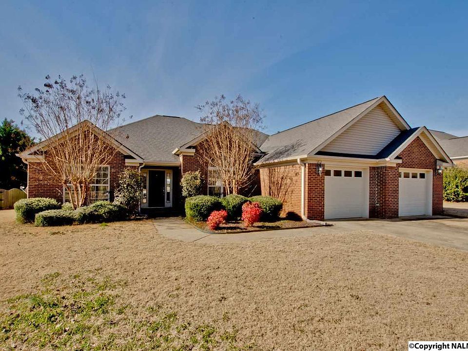 So nice to come home to this low maintenance full brick home with 3 bedrooms, 2 baths. Tons of natural light flood the home. Isolated master suite, An exceptional kitchen with granite counter tops, backsplash, stainless steel appliances opens to great room with gas log fireplace, crown molding great for entertaining and family time Large laundry. Great outdoor living space, enjoy large covered patio, home situated on larger lot in quiet subdivision yet close to shopping and highway 53 access, minutes from Redstone Arsenal and Research Park.