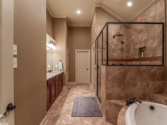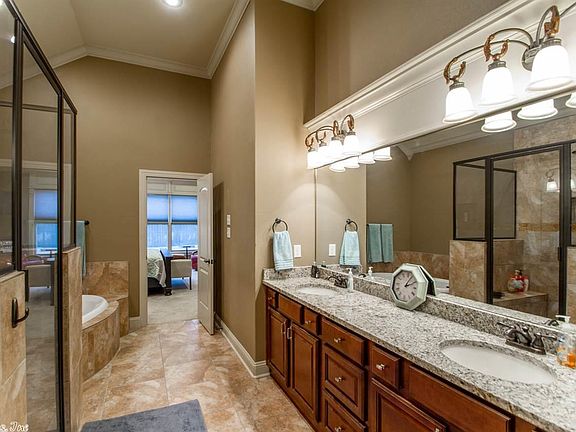 You'll say "WOW" upon entering to 12' ceilings, Wood floors, & complete openness to 2 additional interchangeable spaces used for dining or gathering. Kitchen features granite tops, unique backsplash, pantry & a commercial-grade 5 burner double gas stove! 3 large guest rooms are split from the Master with roomy closets & crown molding. Your Master Suite steals the show with double tray ceiling, huge tile shower with his/her shower heads + rain shower, & a HUGE closet. 3 car garage & Views of Shinall Mtn too!