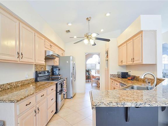 PRICE REDUCTION! Beautiful pool home in quiet, desirable Academy Cove - this is one you won't want to miss! This property is open and airy, with windows through out accented with plantation shutters for an elegant touch. The lovely kitchen boasts granite counter tops and stainless steel appliances with a breakfast bar looking out to the beautiful screened lanai with pool. This split bedroom home offers a master bedroom with walk in closet, direct access to pool area and a gorgeous en suite with spa tub, separate shower and dual sinks. Pool area is large for entertaining with large backyard to boot! Check this property out today!