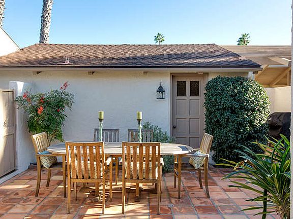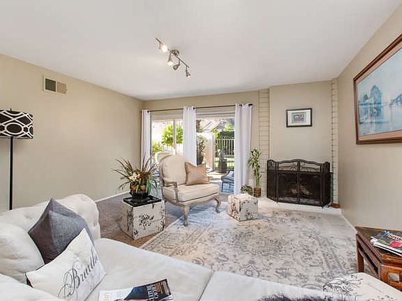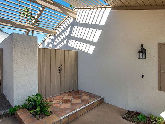 SINGLE-LEVEL Condominium, 2 Bedrooms/2 Full Bathrooms, 2-Car Detached Garage (lots of storage) with private courtyard and back patio that leads to community pool & spa. Short distance to Morgan Run Country Club. Close to Via de la Valle. Travertine tile entry, in kitchen and Master-bathroom. Newer carpet, wood-burning fireplace in living room, spacious master-bath with double-sinks, tiled shower, and extra closet space!