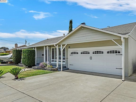 This charming and bright updated home is located in a quiet and connected community ideal for a first-time home buyer! A spacious eat-in kitchen w/granite counters and stainless steel appliances. Three bedrooms, one bathroom, double-pane windows, lovely refinished hardwood floors throughout (tile in kitchen/bathroom). Cozy wood-burning fireplace/mantle ready for enjoyment! A welcoming front porch and beautiful backyard including a wonderful pergola patio area perfect for entertaining, sprawling lawn ideal for games and play, corner yard area ready for a swing set and fort-building fun, an extra-large shed with electricity can be used for storage, hobby shop, exercise space, etc.! A lovely garden with an abundance of shrubs and trees to enjoy: Loquat and lemon trees, zucchini and grapes! Wide lot with space for recreational vehicles and outdoor toys! Attached two-car garage and driveway with plenty of parking and easy accessibility. Schools, parks, restaurants and shopping destinations are all nearby! Quick access to major roads such as I-880, I-238, I-580, the San Mateo Bridge, and the vibrant Silicon Valley. Minutes to South Hayward BART station. Come embrace this opportunity to live in a quiet and connected community with easy access to many Bay Area adventures!