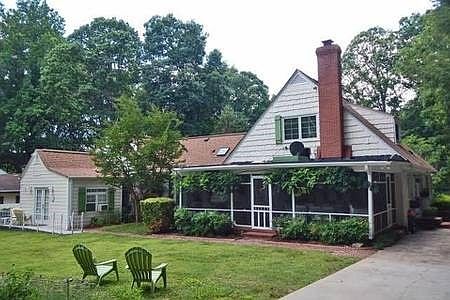 The good life in Starmount! Walk to shopping, parks, & schools. Exceptional curb appeal with front courtyard & expansive screen porch on rear overlooking private landscaped yard w/ pool, Jasmine arbor, and plants galore! 4 bedrooms, 3 full baths in the main house. First floor master bedroom and bath with a second bedroom and full bath on the first floor. Two bedrooms and a bath are upstairs. Skylights in the kitchen & baths bring in a lot of natural light, and two wood burning fireplaces to warm your feet by during the winter. The separate in-law apartment w/ private bath (not included in total sqft) has it's own outside entrance. The garage has an unfinished upstairs with extra gas furnace for future expansion. The garage is ready for a bathroom, and the pool can be heated for year round use.
