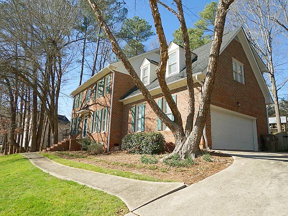 3-sided brick home, move-in ready and on a larger 1/3 acre fenced lot. Hardwood floors through entire downstairs, stairwell and upstairs hallway. Bedrooms and bonus room feature cozy carpet freshly cleaned. Kitchen features beautiful white cabinets with granite countertops, stainless steel appliances with gas stove, breakfast counter, eat-in area. Huge Primary bedroom with large bath featuring dual sinks, separate shower and tub, large walk-in closet accessible by primary bathroom or primary bedroom. Fenced in back yard with garden area, GaGa ball pit, play structure, paver patio area to hang out and enjoy the outdoors. Walk up attic for plenty of storage or future Flex area. Convenient location Close to Crossroads Plaza, access to beltline in 5 minutes and 15 minutes to downtown Raleigh.